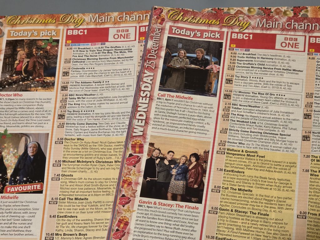 The BBC has fallen into a pattern for its Christmas Day that sees the same type of programme go into the same type of slot: family stuff straight after the King’s speech, Strictly and some filler, Doctor Who if they have it, a sitcom, Call The Midwife, EastEnders, Mrs Brown’s Boys, some sitcom repeat and a late-night film.